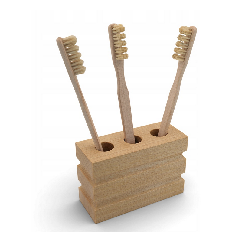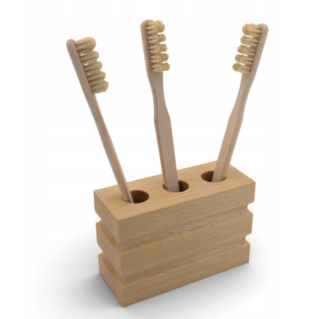 Najwyższej jakości stojak na szczoteczki do zębów zrobiony całkowicie ręcznie, kilkukrotnie polerowany i olejowany będzie idealnym uzupełnieniem naszych całkowicie naturalnych szczotek do zębów.